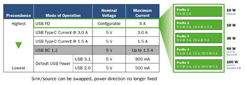 這些特性將為USB創建新的應用,特別是在供電方面。繼續驅動超低功耗處理意味著可以用更少的功率完成更多的工作,并且由于USB連接的總功率現可達100W(圖1),這開啟了各種各樣的可能性。但要實現這一潛力,需要一個能夠實現預算的USB控制器。