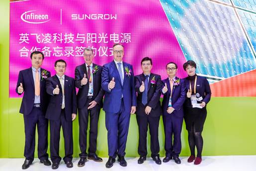 英飛凌與陽(yáng)光電源雙方管理層簽署《戰(zhàn)略合作備忘錄》后合影
