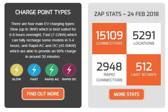 截至2018年2月24日止,英國在5291不同的地點共有15109個公共充電樁(在最近30天內增加了512個),其中有2948個超快充電樁。