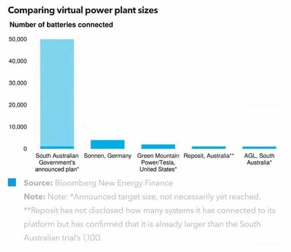 2018年2月4日,南澳大利亞州政府宣布了一項價值8億澳元的宏大項目,計劃打造世界上最大的虛擬電廠。該項目預計可為南澳大利亞帶來250兆瓦的可調度容量,并降低發電端用戶的用電費用。目前,特斯拉已經拿到經費,開始首輪覆蓋1100個家庭的建設。一旦成功,該項目將充分展示分布式電力資產作為一種未來電廠模型的潛力。