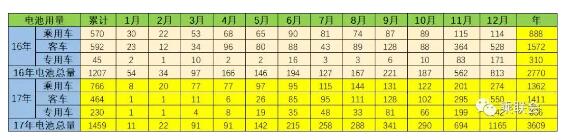 2017年專用車和客車是年末的電池需求的主力,12月電池需求1165萬度電需求,其中客車占了550萬度,專用車342萬度,而乘用車是274萬度的低位。