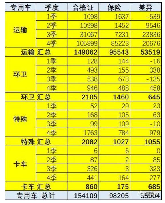 從產(chǎn)銷的結(jié)構(gòu)看,汽車合格證數(shù)據(jù)與乘聯(lián)會批發(fā)數(shù)據(jù)相對比較接近。而專用車數(shù)據(jù)相對運(yùn)行不暢,專用車生產(chǎn)15.4萬,上牌9.8萬,產(chǎn)銷的缺口相對較大。