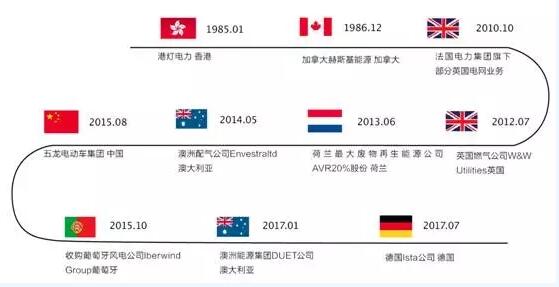 在區域布局上,英國能源市場備受李嘉誠青睞。2005年起,李嘉誠在英國能源市場上進行了多筆大額投資,先后購入英國NGN燃氣管道網絡88.4%的股權,英國南方水務4.879%的股份,英國電網100%的股份以及英國最大的自來水供應和污水處理公司之一NorthumbrianWaterGroup,英國天然氣供應商威爾士和西部公用事業公司。