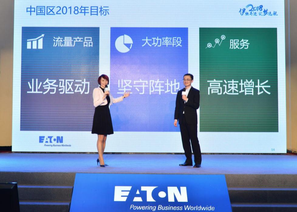伊頓電氣集團電能質量業務部高級副總裁兼總經理柯瑞達(Christopher Butler)、伊頓電能質量關鍵電力解決方案事業部亞太區總經理胡祖忻(Claire Hu Weber)、伊頓電氣集團關鍵電能解決方案事業部大中華區銷售總監李鳴(Andy Lee)、伊頓電氣電源質量事業部亞太區人力資源總監張暉(Whitney Zhang),攜伊頓銷售部、市場部、服務部、應用技術支持部、渠道管理部、道德與合規辦公室等各部門負責人,從戰略、營銷、產品、技術、服務、渠道管理、穩健經營等各個角度展示了伊頓在過去一年中取得的成果,以及在2018年如何繼續開拓創新,握住時代脈搏,與合作伙伴攜手共贏。