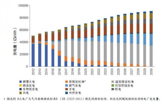 2012-2030年中國電力行業發電構成變化