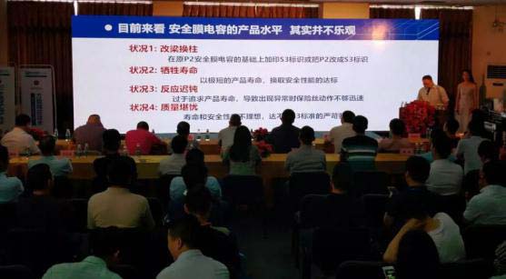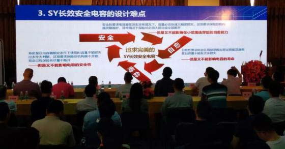 勝業(yè)研發(fā)總工程師陳榕向現(xiàn)場嘉賓詳細(xì)介紹“SY長效安全電容”的技術(shù)優(yōu)勢