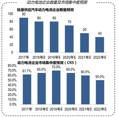 伊維經濟研究院研究總監吳輝在“2018中國新能源動力電池暨儲能產業大會”上發布的報告顯示,就動力電池企業數量及市場集中度而言,截至2020年,動力電池企業總量或將逐步減少,集中度將在2019年達到最高值70%,然后逐年下降,2020年或降低至50%。