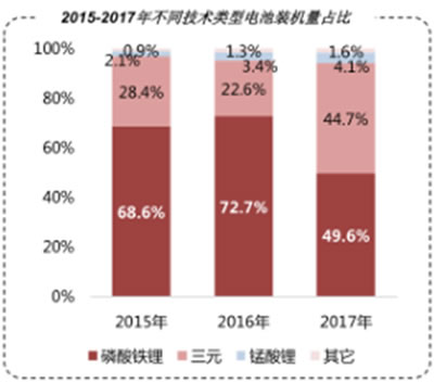 隨著行業逐步成熟,集中度提升的同時加劇了洗牌力度。龍頭企業市場份額提升,CATL由2016年的20.6%的份額提升到2017年的29.2%;企業競爭格局發生變化,乘用車用電池和三元電池占比明顯提升。