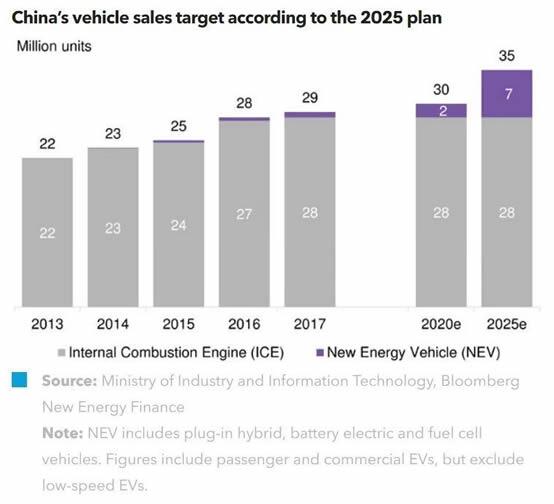 2020年中國政府的新能源汽車銷售目標