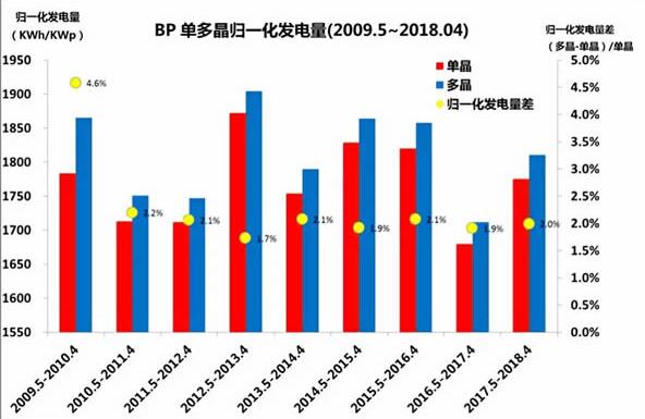 九年平均,多晶的發(fā)電量比單晶高2.3%。