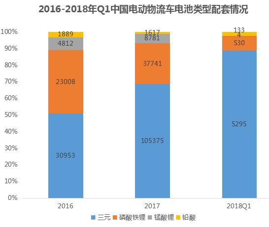 2016年開始,隨著三元電池技術的逐步提升,產能的釋放,成本的下行,三元電池的高能量密度優勢凸顯,三元電池在電動物流車上的裝機比例逐年提升。