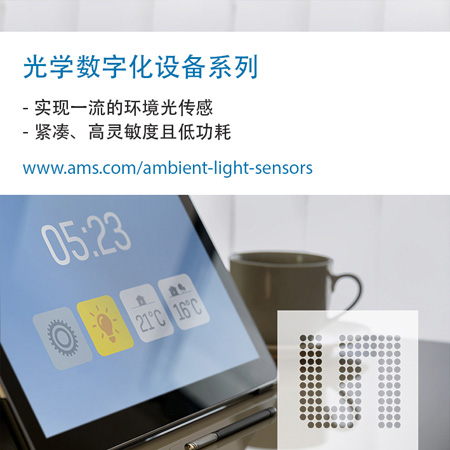 艾邁斯半導體先進光學傳感器業務高級市場營銷經理David Moon表示:“環境光和接近傳感器廣泛應用于當今的智能手機和平板電腦。由于這個新產品系列的高靈敏度和封裝尺寸,艾邁斯半導體可滿足新興市場應用的需求,如智能家居設備、IoT中樞和消費電子產品。靈活的工業設計是家居設備的一個重要要求,而該系列產品的小巧外形使其非常適合這些應用。”