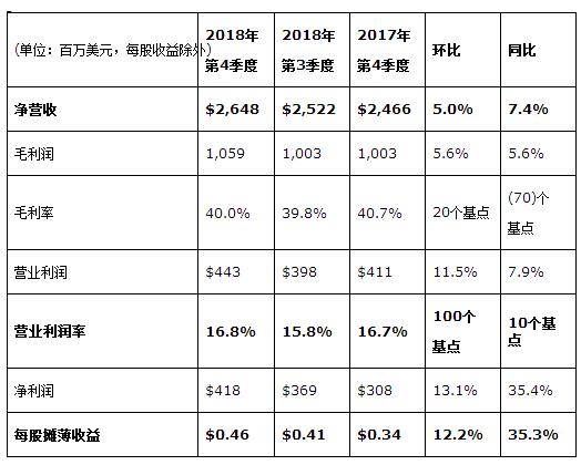 ·2019年第一季度業務展望:凈營收中位數約21億美元,毛利率中位數約39.0%