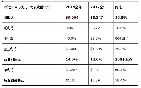 ·全年:凈營收96.6億美元,增長15.8%,營業利潤14.0億美元,增長39.3%;凈利潤12.9億美元,增長60.4%