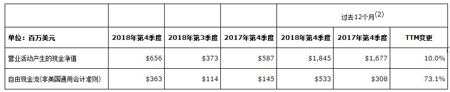 第四季度自由現金流(非美國通用會計準則)為3.63億美元,比去年同期增長150.3%,2018全年為5.33億美元,比2017年增長73.1%。