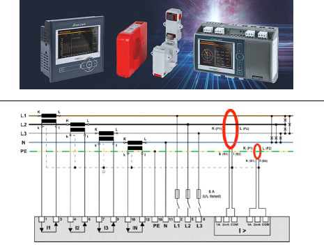 圖解:在最佳情況下,使用六個電流通道進行監控,如圖所示。通道5用于RCM剩余電流監控,通道6用于直接測量接地電流(最大1000A)。