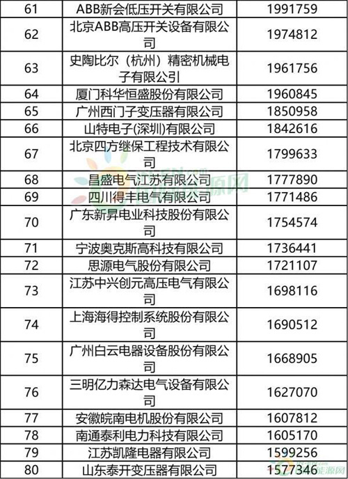值得注意的是,特變電工旗下有多家子公司入選該榜單。除了排名第七的特變電工股份有限公司之外,還有排名第十二的特變電工沈陽變壓器集團有限公司和排名第十四的特變電工衡陽變壓器有限公司。施耐德公司也有五家公司入選,ABB公司有8家企業上榜,成為上榜企業數量最多的公司。