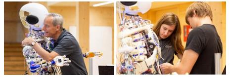 工程師團隊積極備展,對Roboy進行出發前的最后調試