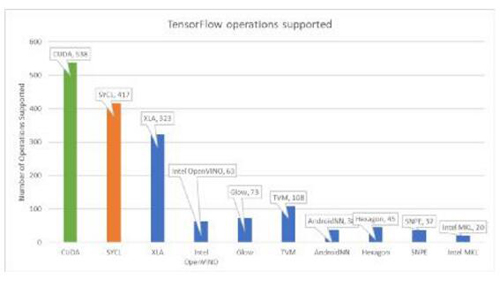 TensorFlow的SYCL版本支持大量的人工智能(AI)操作(如圖1),并且用戶也易于去按需定制,這意味著開發(fā)人員通過使用最新的神經(jīng)網(wǎng)絡(luò)或他們自己研究的AI技術(shù),就可以在PowerVR上運(yùn)行那些即刻可用的高性能網(wǎng)絡(luò)。由于TensorFlow SYCL的支持既是開源的又是基于開放標(biāo)準(zhǔn)的,因此對于那些想要在低功耗設(shè)備上對最新的AI技術(shù)進(jìn)行加速的開發(fā)人員而言,它是一種理想的解決方案。