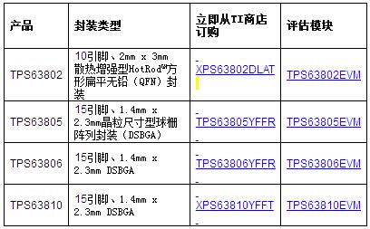 TPS63805和TPS63806現已投產,可在TI商店和授權經銷商處訂購。TPS63802和TPS63810的預制樣品也開放訂購。
