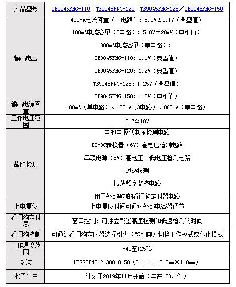 中國上海,2019年12月10日——東芝電子元件及存儲裝置株式會社(“東芝”)今日宣布,推出新款通用電源IC---“TB9045FNG”,該器件通過多路輸出實現汽車應用的功能安全[1]。這款新型IC提供四種供貨版本,輸出電壓為1.1V至1.5V。量產已于本月開始。