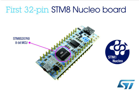 STM8 Nucleo-32開發(fā)板的首款上市產(chǎn)品NUCLEO-8S207K8集成一個32引腳STM8S207K8 MCU,功能包括12個大電流輸出端口和多個捕獲比較通道。