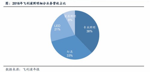 此后,在飛利浦、通用電氣、歐司朗這昔日世界三大照明企業(yè)中,飛利浦與通用電氣交替領(lǐng)先全球照明市場。2009至2014年飛利浦照明業(yè)務(wù)營業(yè)收入連續(xù)6年排名全球第一。僅2016年,飛利浦照明業(yè)務(wù)營收71億歐元,占公司總營收的29%。其照明業(yè)務(wù)主要細(xì)分為四類:專業(yè)照明、燈具、LED以及家居照明,專業(yè)照明在照明業(yè)務(wù)中占比最高,營收27億歐元,占照明業(yè)務(wù)的38%。