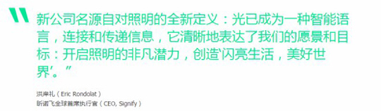 2018年3月,飛利浦照明宣布計(jì)劃將名稱改為Signify(昕諾飛)。根據(jù)和皇家飛利浦的授權(quán)協(xié)議,昕諾飛產(chǎn)品將繼續(xù)使用飛利浦品牌。