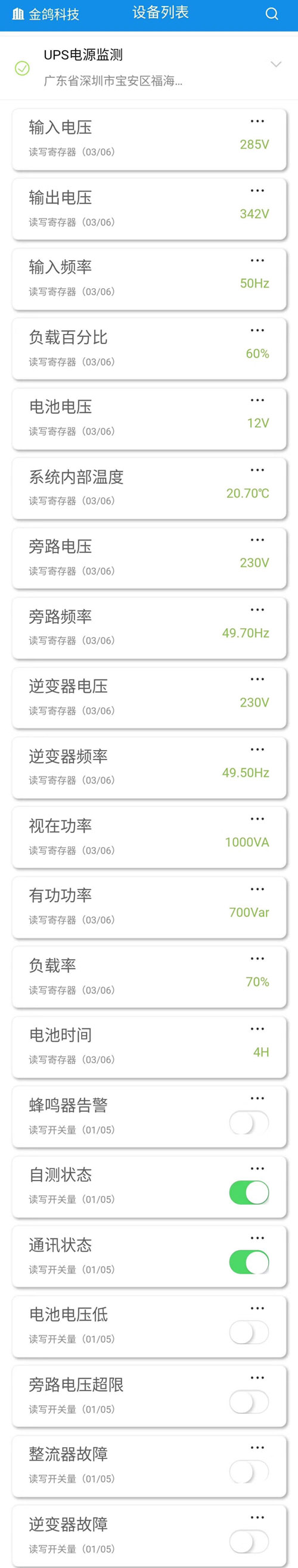 把UPS電源的RS485輸出轉為4G無線傳輸接入云平臺,從而實現數據的遠程實時查看與告警,并且實現在云平臺上設置參數、遠程操作與控制等功能。可單獨直接使用或嵌入到傳感器中,適用于中國移動、中國聯通的GSM網絡、中國聯通的WCDMA 3G網絡、4G網絡以及NB-IoT網絡。