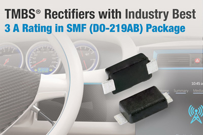 賓夕法尼亞、MALVERN — 2019年1月30日 — 日前,Vishay Intertechnology, Inc.(NYSE 股市代號:VSH)宣布,推出15款采用eSMP®系列超薄SMF (DO-219AB)封裝新型1 A、2 A和3 A器件,擴充其表面貼裝TMBS® Trench MOS勢壘肖特基整流器產(chǎn)品。Vishay General Semiconductor器件比其他SMA封裝整流器節(jié)省空間,反向電壓從45 V到150 V,3 A電流等級達(dá)到業(yè)內(nèi)SMF封裝器件最高水平。