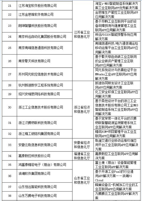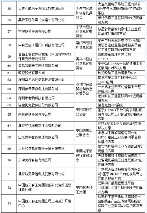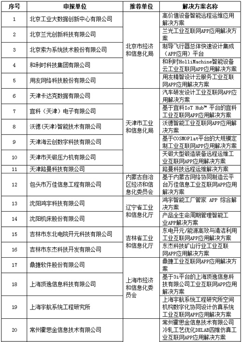 附:2018年工業(yè)互聯(lián)網(wǎng)APP優(yōu)秀解決方案公示名單