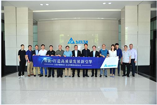 原工信部節(jié)能與綜合利用司司長周長益(右七)、機械科學研究總院裝備制造業(yè)發(fā)展中心所長吳進軍(左五)、賽迪顧問智能裝備產(chǎn)業(yè)研究中心總經(jīng)理張凌燕(右四)等專家,參訪臺達吳江智能制造示范線,肯定臺達智造升級