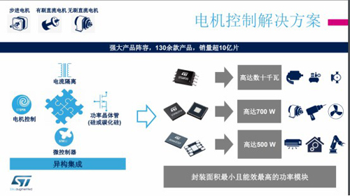 第二是電機(jī)控制。當(dāng)前市場(chǎng)上存在各種不同類型的電機(jī),而意法半導(dǎo)體也有不同的電機(jī),如上述Benedetto Vigna所提到的幾瓦到數(shù)十千瓦的電機(jī)。意法半導(dǎo)體的電機(jī)控制解決方案采用異構(gòu)集成,通過(guò)對(duì)電機(jī)控制、電流隔離、功率晶體管(硅或碳化硅)、微控制器四大單元集合,能夠?yàn)榭蛻魩?lái)高度集成化的解決方案。無(wú)論是在微控制器方面,還是在功率晶體管和電流隔離方面,毫無(wú)疑問(wèn)意法半導(dǎo)體帶來(lái)的均是業(yè)界領(lǐng)先的技術(shù)。高度集成化的解決方案,同時(shí)又是客戶所需要的產(chǎn)品,這就是Benedetto Vigna所說(shuō)的意法半導(dǎo)體提供的微控制器產(chǎn)品。
