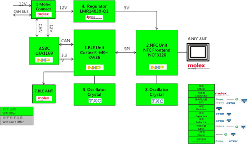 圖示2-大聯大世平推出基于NXP的BLE+NFC智能無鑰匙進入系統解決方案的方案塊圖