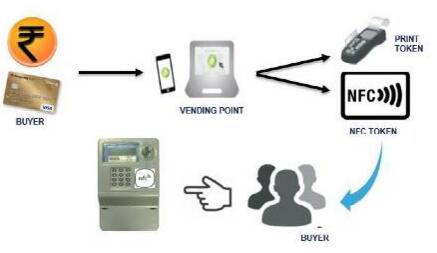 NFC非接觸式預(yù)付系統(tǒng)能夠有效地控制客戶場所安裝的電度表內(nèi)的電能供給量。預(yù)付費(fèi)電表的工作原理是先買電,后使用,用戶提前購電,然后通過某種方式錄入預(yù)付費(fèi)電表內(nèi)。這類電表可以讓消費(fèi)者決定想買多少電,用多少電,使消費(fèi)者能夠更好地控制電費(fèi)。在預(yù)存電量用完后,電表自動(dòng)斷電。直到卡內(nèi)剩余電量通過NFC功能重新錄入電表,電表才能繼續(xù)供電。
