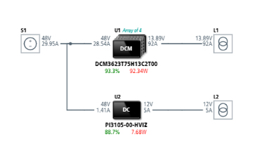 DC-DC轉換器電源系統使用四個Vicor DCM3623隔離式穩壓DC-DC轉換器ChiP電源模塊,從電池組提供13.8V穩壓輸出,電流最高可達92安培。由于其小巧纖薄的外形,它們在安裝后與電池單元之間延伸的微孔冷卻板直接熱接觸。