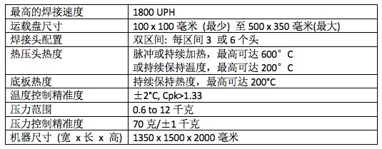 配備的熱壓焊頭可為焊接工序提供高精準的脈沖式加熱,或為ACF應用提供持續式加熱