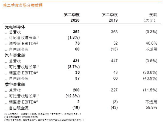 光電半導體事業部(OS)第二季度調整的EBITDA(息折舊及攤銷前利潤)利潤率高達21%,實現銷售額3.62億歐元。