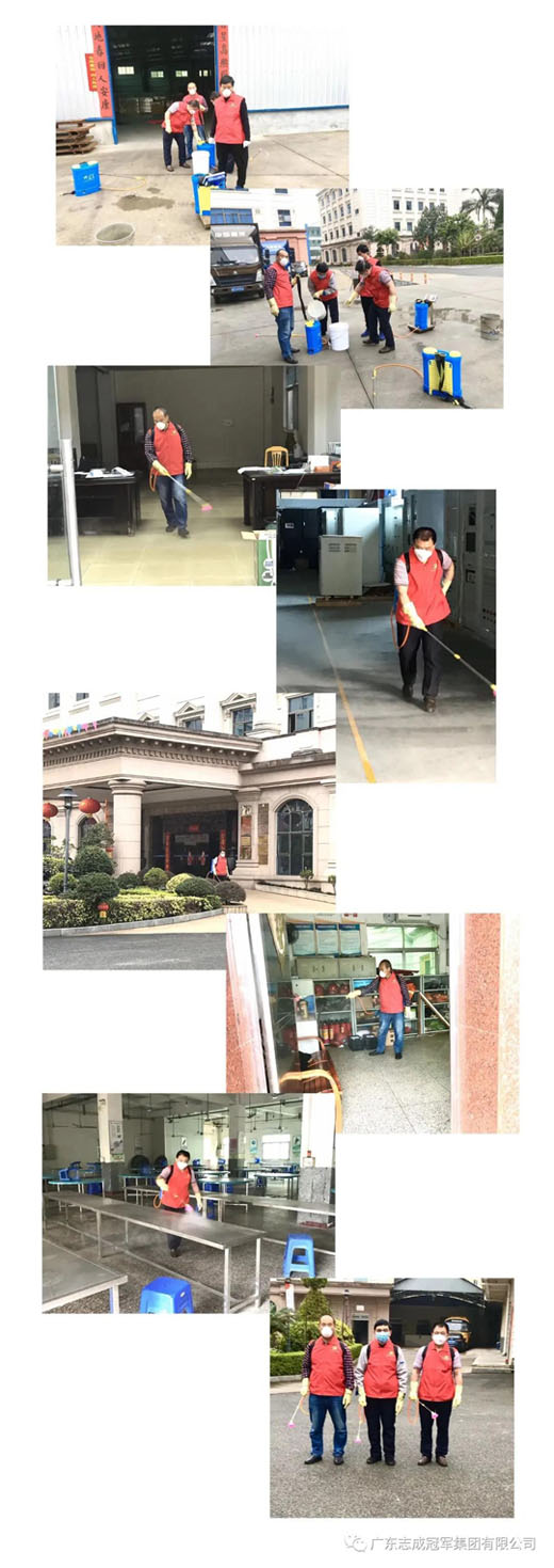 在全國新型冠狀病毒疫情面前,志成冠軍黨員率先堅(jiān)守崗位,置辦宣傳標(biāo)貼宣傳單、做好返工人員安置與登記、廠區(qū)內(nèi)部定期無死角噴灑消毒…一絲不茍,不敢有絲毫松懈,為保公司職場及員工自身安全積極沖鋒在前。