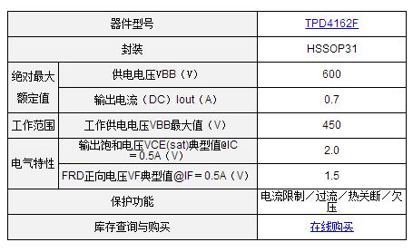 TPD4162F具有各種控制電路[2]、輸出級安裝了IGBT和FRD。其支持從霍爾傳感器或者霍爾IC直接驅動帶方波輸入信號的無刷直流電機,無需PWM控制器IC。與此同時,其各種內置保護電路[3]還減少了外圍電路。此外,采用小型表面貼裝封裝HSSOP31也有助于縮小電機控制電路板的尺寸和高度。
