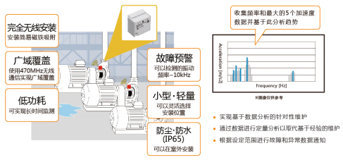村田基于振動(dòng)傳感器和無線通信模塊的旋轉(zhuǎn)機(jī)械振動(dòng)監(jiān)測(cè)方案,通過數(shù)據(jù)進(jìn)行定量分析,以取代基于經(jīng)驗(yàn)的維護(hù),實(shí)現(xiàn)基于數(shù)據(jù)分析的針對(duì)性維護(hù),能夠提高日常維護(hù)的效率,并通過故障預(yù)測(cè)避免意外故障或停機(jī)的發(fā)生。