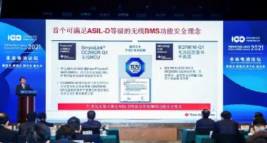 在演講中,師英介紹了德州儀器剛剛在2021國際消費類電子產品展覽會(CES 2021)率先發布的業內首個通過TÜV SÜD評估、滿足ISO 26262 ASIL D功能安全等級的無線電池管理(WBMS)解決方案。該解決方案可以提供業界出色的網絡可用性(超過99.999%),并可支持跨多平臺可靠擴展,幫助汽車客戶設計制造更加安全、可靠、高效且行駛更遠的電動汽車。