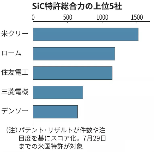 根據(jù)《日本經(jīng)濟(jì)新聞》7日報(bào)導(dǎo),第三代半導(dǎo)體碳化硅(SiC)的專利競爭激烈,相關(guān)專利數(shù)量最多的前五名都是來自美國、日本的大企業(yè)。