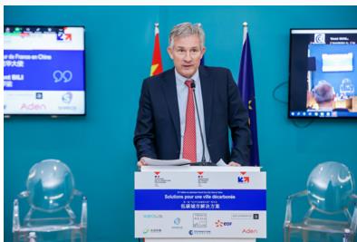 法國駐華大使館經濟事務公使銜參贊Jean-Marc Fenet江峰先生為此次研討會致開幕詞。隨后,法中兩國專家就“城市低能耗、環境友好的解決方案”和“城市吸引力、風險抵御力和智慧化的提升方案”兩個主題展開討論。法國駐華大使Laurent Bili羅梁先生為本次研討會做閉幕致辭,并在最后舉行了雞尾酒會。由法中兩國官員和兩國企業代表所組成的與會者,也就此加深了他們對城市空間規劃、建設“碳中和”城市以及相關內容的理解。
