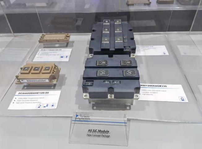 富士電機(jī)早在2014年就推出了平面結(jié)構(gòu)的全碳化硅模塊應(yīng)用在本社電力電子部門研發(fā)的光伏逆變器(1MW)中。相比較于傳統(tǒng)的硅模塊,損耗可以降低7成左右,達(dá)到了當(dāng)時(shí)的業(yè)界最高效率98.8%,獲得了市場的廣泛好評(píng)。2018年推出了基于第一代溝槽柵結(jié)構(gòu)的全碳化硅模塊。開發(fā)中的第二代SiC-Mosfet,通過芯片減薄和溝槽間距微細(xì)化技術(shù)T單位面積的導(dǎo)通電阻比第一代降低了23%。另外模塊內(nèi)部的端子結(jié)構(gòu)也進(jìn)行了重新設(shè)計(jì),大大降低了模塊的寄生電感。模塊的封裝外形將繼續(xù)保持與傳統(tǒng)的硅模塊的封裝兼容避免客戶在系統(tǒng)結(jié)構(gòu)上做重新設(shè)計(jì),節(jié)省開發(fā)資源。預(yù)計(jì)將會(huì)在2023年進(jìn)行量產(chǎn),主要面向EV、風(fēng)力發(fā)電、太陽能發(fā)電、高壓變頻器等各類高壓應(yīng)用。