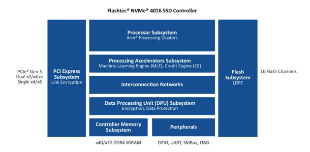第四代Flashtec控制器配有16個高速可編程NAND閃存通道,傳輸速度高達每秒2400 MT,可充分利用PCIe 5的4倍速帶寬。NVMe 4016既能讓現有客戶繼續使用在前幾代產品中的固件投資,也讓新客戶有信心把這一成熟的平臺靈活應用于最棘手的云和企業應用。