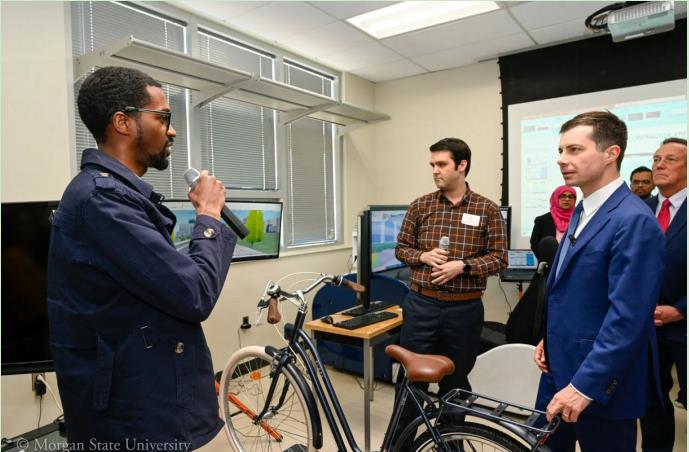 摩根州立大學是位于美國巴爾的摩市的黑人大學,歷史悠久。此次接待了美國交通部部長Pete Buttigieg的訪問,帶領他參觀了校園及國家交通中心實驗室。在參觀校內的城市出行與公平中心時,Pete Buttigieg部長重點了解了Velodyne的智能基礎設施解決方案(IIS),查看了由VelodyneUltra Puck傳感器生成的多傳感器輸出數據,并與在校學生共同探討了智能基礎設施解決方案(IIS)的未來潛在應用。該解決方案由Velodyne與Bluecity和Iteris合作部署,安裝在校園內的一個主要十字路口處,以收集交通數據并進行安全分析。