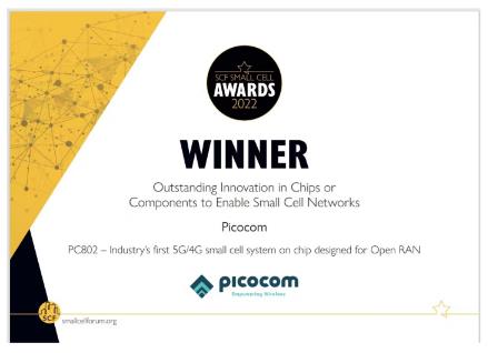 中國杭州-2022年6月-5G小基站基帶芯片和運營級軟件提供商比科奇高興地宣布,公司日前成為2022年度全球小基站論壇(SCF)大獎的獲勝者。比科奇憑借其PC802芯片獲得了該獎項的“小基站網絡芯片與組件杰出創新獎”。PC802芯片是業界首款專為滿足包括Open RAN等標準而設計的4G/5G小基站系統級芯片(SoC)。
