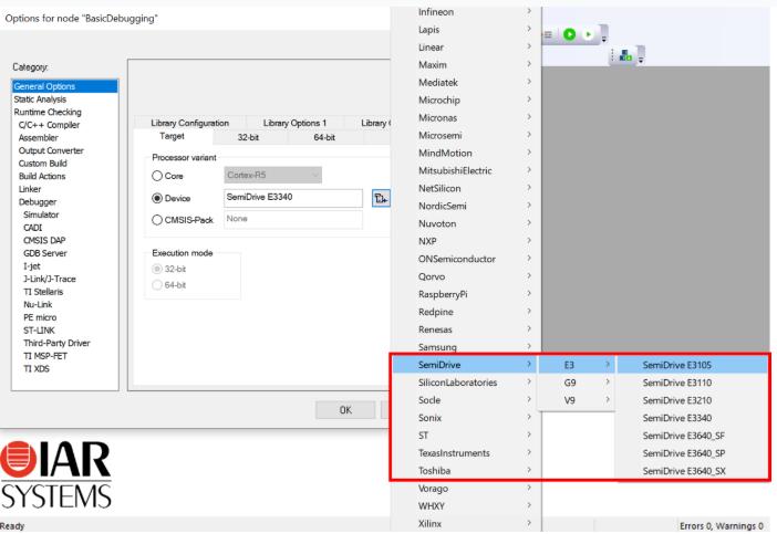 IAR Embedded Workbench for Arm集成開發(fā)環(huán)境已全面支持芯馳科技9系列SoC和E3系列MCU