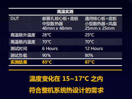 除在制造環境下做工業級品質的測試,躍昉也有高溫實驗室用以模擬系統應用類環境。據躍昉分享的基于給國網做的系統和模擬系統場景兩案例測試顯示,整個溫度變化大概是15-17度,非常符合整機系統熱設計的需求。